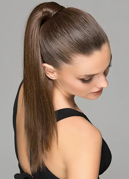 Просто соберите в плотный пучок свои волосы и зафиксируйте шиньон с помощью специального зажима. Отдельной дополнительной прядью аккуратно оберните основание шиньона и закрепите шпилькой.