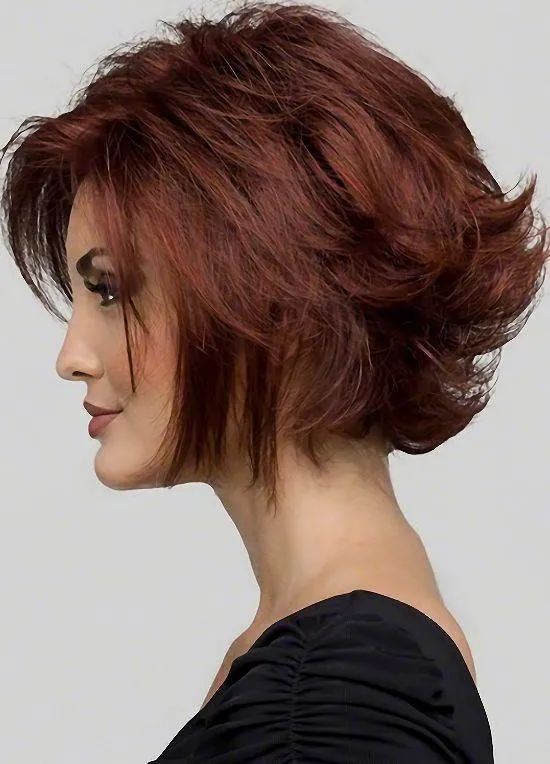 Это легкий и удобный стиль для меня. Он хорошо смешивается с моими собственными волосами. Я купила темно-красный, и теперь могу красить волосы так же как и раньше. Никто не догадывается, что я ношу парик. Не пришлось даже нести его к парикмахеру. Просто достала из упаковки и ношу.
