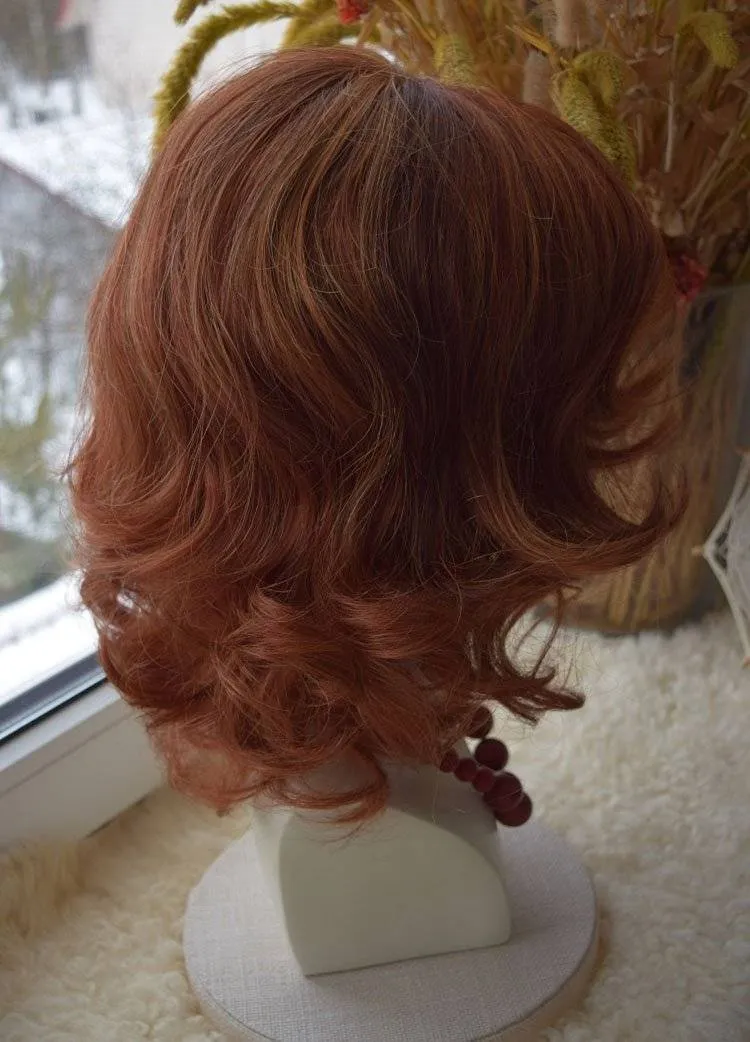 В области висков и челки волоски вручную закреплены на тонкую прозрачную сеточку, что создает впечатление естественного роста волос даже при близком рассмотрении.