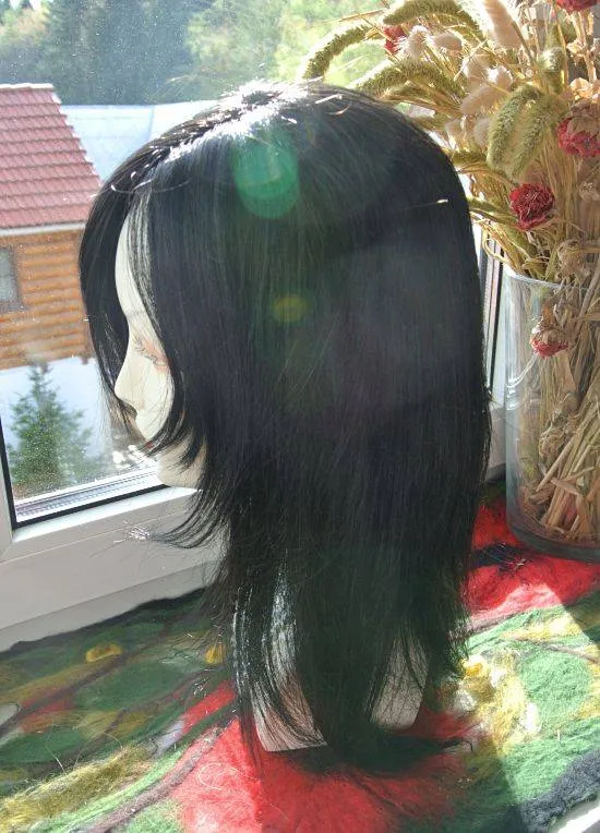 Виски и челка — области, которые способны выдать то, что на вас парик. Однако в этой модели использована тонкая прозрачная сетка, на которую волоски крепятся вручную, то вам такая опасность не грозит. В результате чего вы сможете смело зачесывать или приподнимать волосы в этих местах..