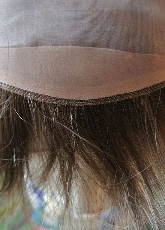 Благодаря тонкой фронтальной линии волос не заметны места соединение парика и кожи головы.