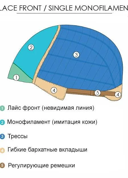 Верх парика изготовлен с применением Monofilament'а, который имитирует кожу головы. В результате чего закрепленные на парике волосы внешне соответствуют натуральному росту волос.