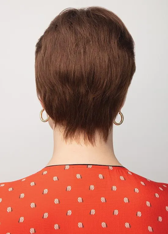 Я довольна этим париком. Темно-шоколадный цвет выглядит так-же, как и на фотографии. Тонкая фронтальная линия скрывает от всех, что на мне парик. Но за париком все равно нужен уход. Это не сложно, потому что это натуральный парик, я его мою и немного укладываю. Удобный, хороший парик с короткой стрижкой.