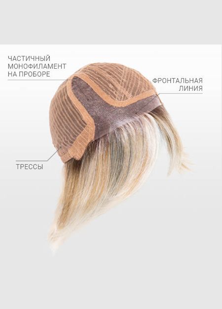 В область пробора парика вшито моноволокно – очень тонкая, практически невидимая на коже ткань, в которую волосы вплетены вручную по одному. Благодаря этому парик выглядит совершенно естественно.