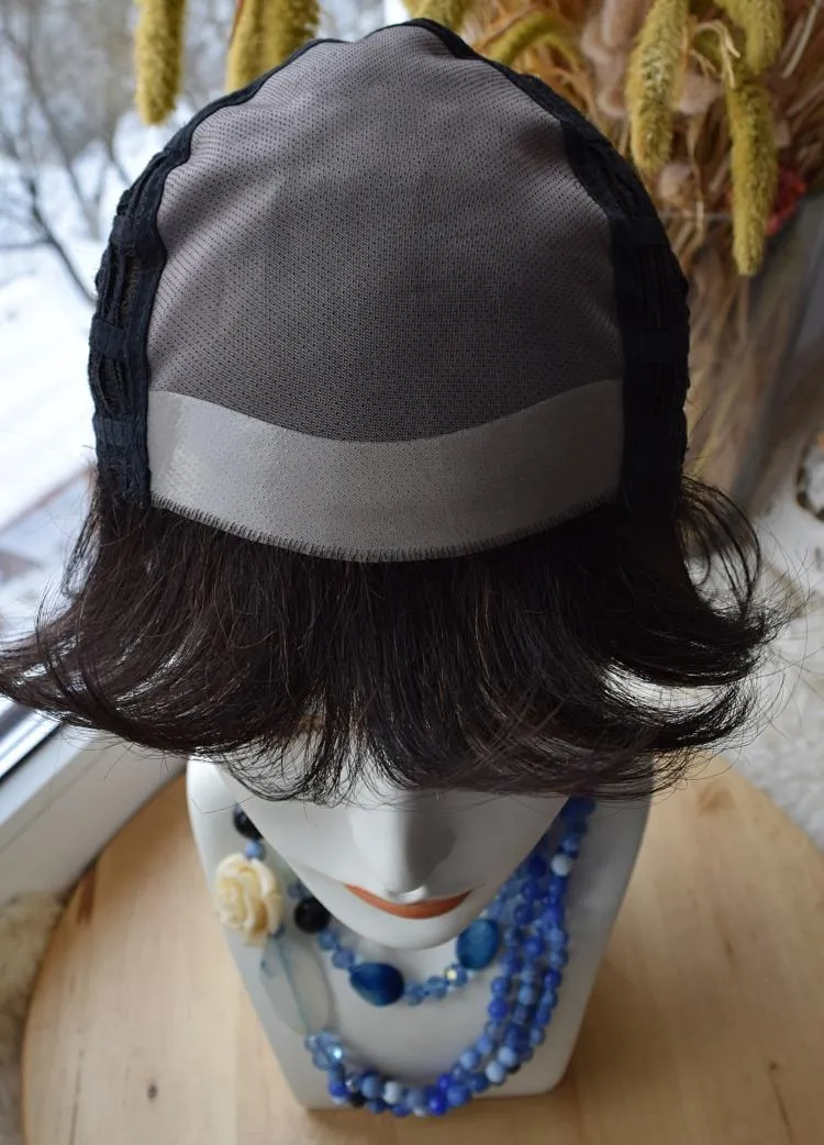 Для более надежной фиксации и для предотвращения скольжения парика в некоторых местах добавлены полоски полиуретана, служащие местом для крепления изделия на двусторонний скотч (тейп).