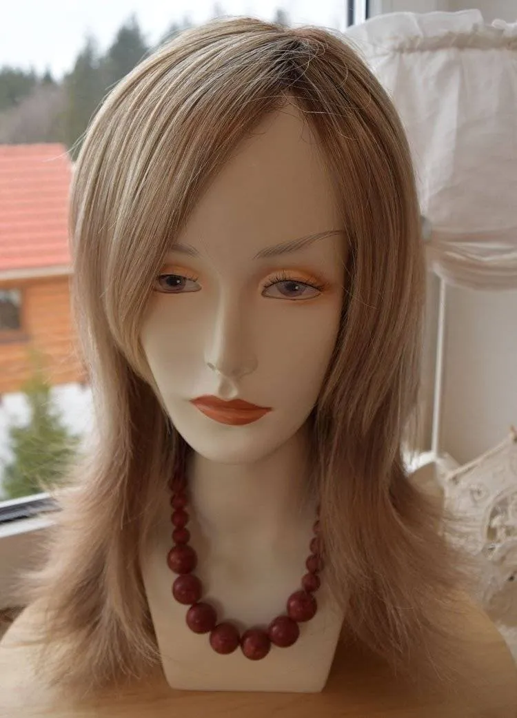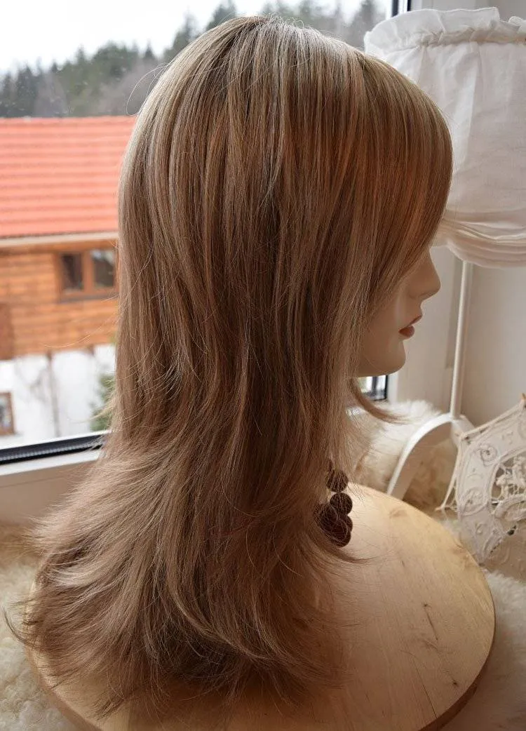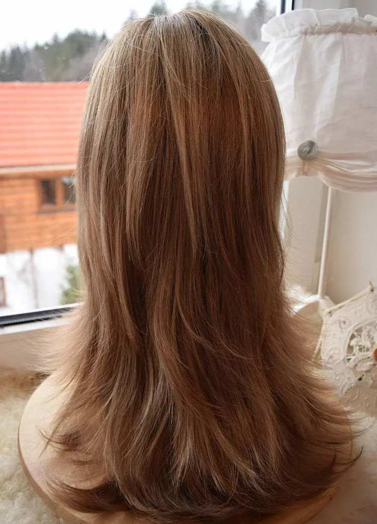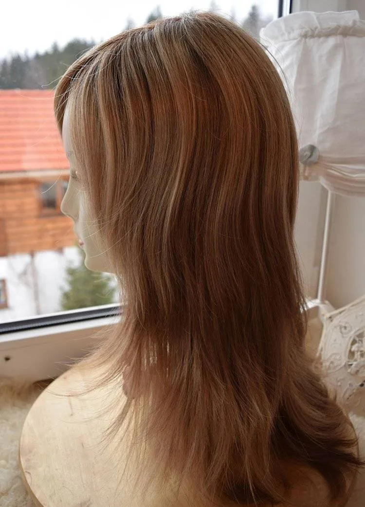 Виски и челка — области, которые способны выдать то, что на вас парик. Однако в этой модели использована тонкая прозрачная сетка, на которую волоски крепятся вручную, то вам такая опасность не грозит. В результате чего вы сможете смело зачесывать или приподнимать волосы в этих местах.