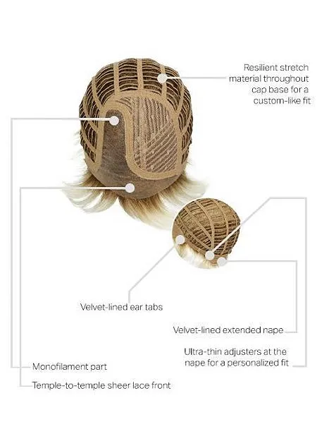 Для того, чтобы ни у кого не возникло сомнения в том, что данная прическа — не парик, а ваша настоящая стрижка, чтобы вы могли не бояться раскрытия своего секрета, пробор парика сделан с использованием монофиламента — материала, который максимально имитирует натуральный рост волос.