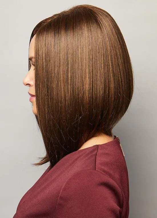 Невидимая фронтальная линия волос, тонкая сетка с закрепленными волосками в области висков и челки — все это позволяет убрать грань, разделяющую настоящую прическу от стрижки парика. Теперь волосы можно приподнимать, укладывать их в разные стороны.