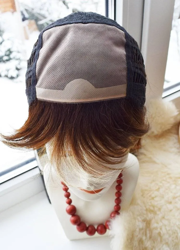 Верхняя часть модели выполнена с использованием основы монофиламента, которая имитирует кожу головы, таким образом придавая естественный вид проборам. Данный факт позволяет укладывать волосы в любом направлении.