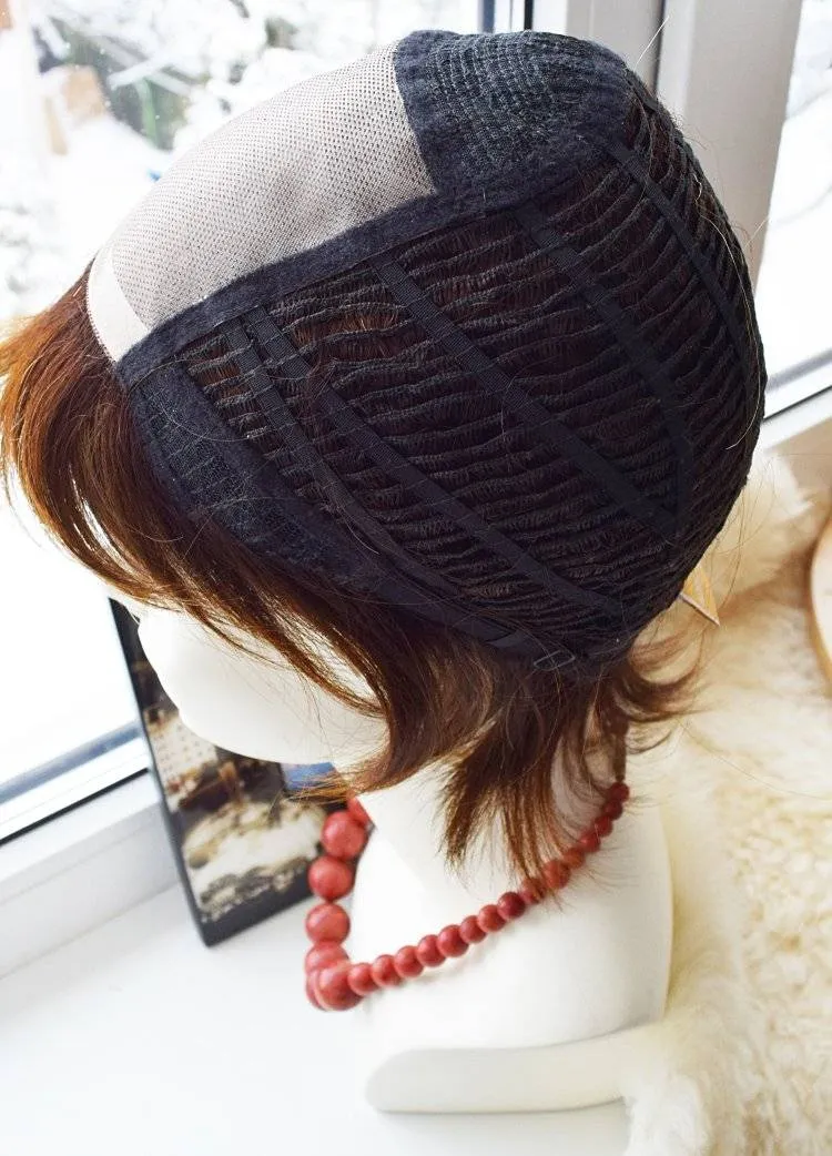 Для более надежной фиксации и для предотвращения скольжения парика в некоторых местах добавлены полоски полиуретана, служащие местом для крепления изделия на двусторонний скотч (тейп)