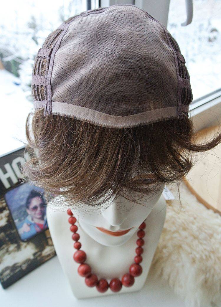 Для более надежной фиксации и для предотвращения скольжения парика в некоторых местах добавлены полоски полиуретана, служащие местом для крепления изделия на двусторонний скотч (тейп).