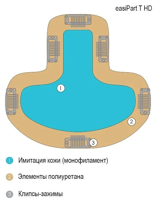 Для более надежной фиксации и для предотвращения скольжения парика в некоторых местах добавлены полоски полиуретана.