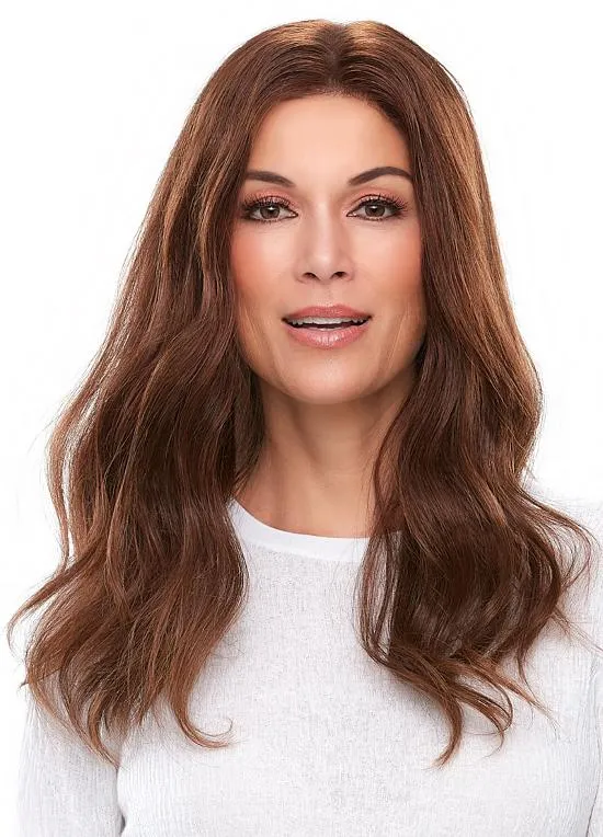 Верх изделия изготовлен с применением Monofilament'а, который имитирует кожу головы. В результате чего закрепленные на накладке волосы внешне соответствуют натуральному росту волос. Преимущества подобного материала оценили женщины всего мира, так как это позволяет укладывать волосы в любом направлении.