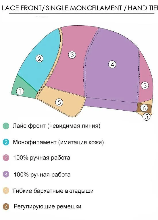 Верх парика изготовлена с применением Monofilament'а, который имитирует кожу головы. В результате чего закрепленные на парике волосы внешне соответствуют натуральному росту волос.Преимущества подобного материала оценили женщины всего мира, так как это позволяет укладывать волосы в любом направлении