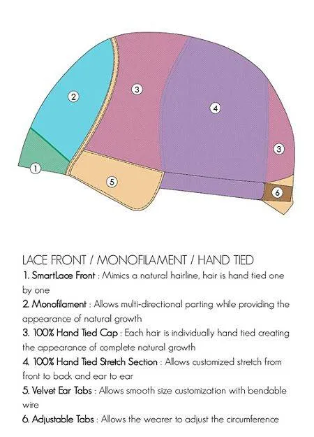 Верх парика изготовлена с применением Monofilament'а, который имитирует кожу головы. В результате чего закрепленные на парике волосы внешне соответствуют натуральному росту волос.