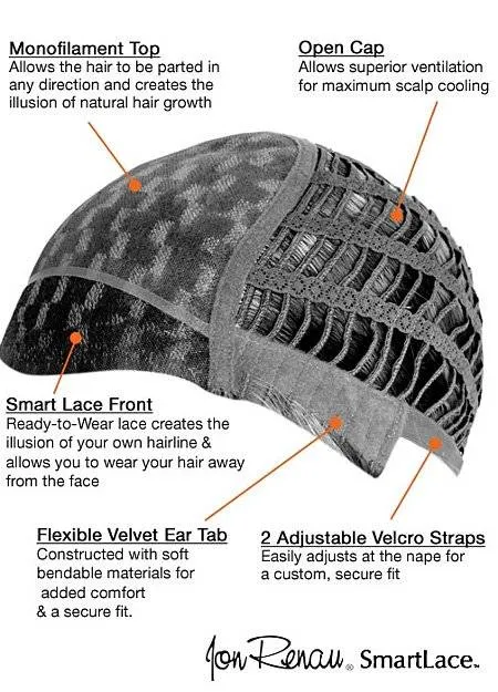 Верх парика изготовлен с применением Monofilament'а, который имитирует кожу головы. В результате чего закрепленные на парике волосы внешне соответствуют натуральному росту волос.