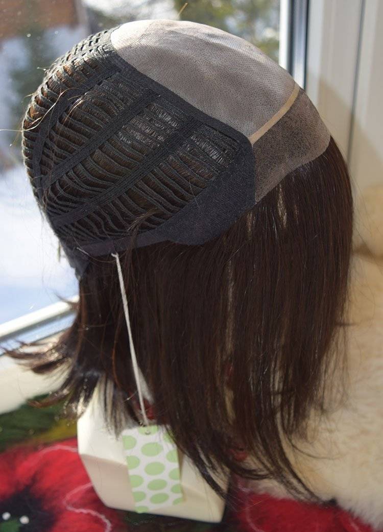 Виски и челка — области, которые способны выдать то, что на вас парик. Однако в этой модели использована тонкая прозрачная сетка, на которую волоски крепятся вручную, то вам такая опасность не грозит. В результате чего вы сможете смело зачесывать или приподнимать волосы в этих местах.